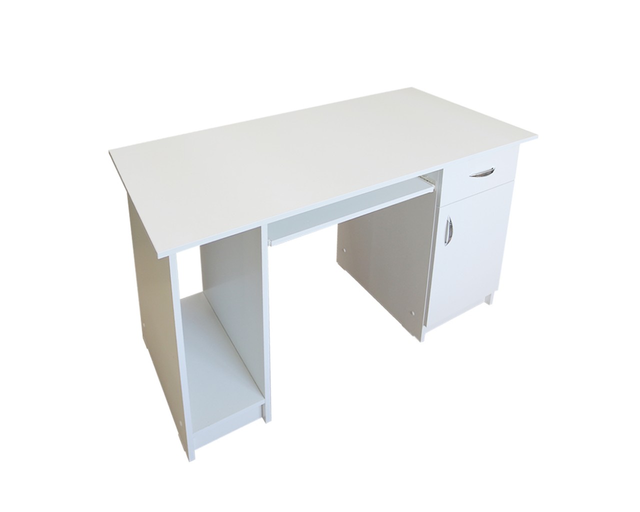 Birou Nero cu 1 usa si 1 sertar cu spatiu de depozitare ideal pentru unitate PC, suport mobil pentru tastatura, fabricat din PAL melaminat cu grosimea de 16 mm, capacul este cantuit cu cant ABS cu grosimea de 2 mm pentru o rezistenta sporita la uzura, manere cu design modern din plastic cu filet metalic, picioruse din plastic cu rol impotriva zgarierii pardoselilor. Latime: 120 cm , Inaltime: 74 cm , Adancime: 60 cm