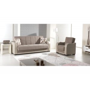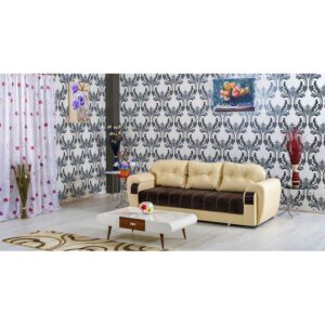 Canapea extensibila Cannes, in culori de albastru, gri, maro si crem. Model de canapele extensibile plin de eleganta si rafinament, foarte practice cu picioare inalte ce permit spalarea pardoseliii cu usurinta.