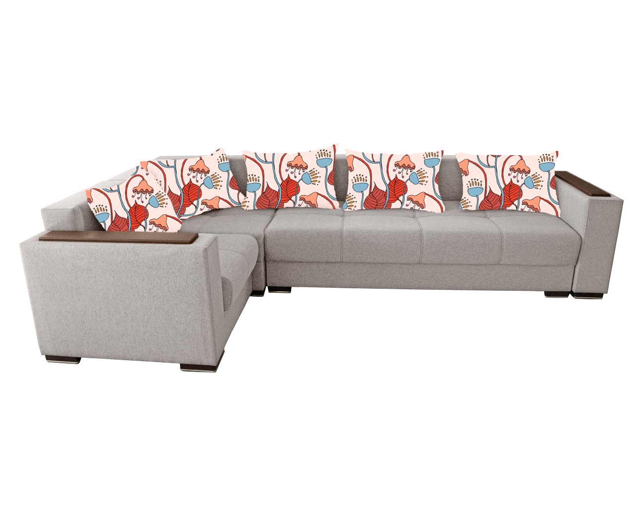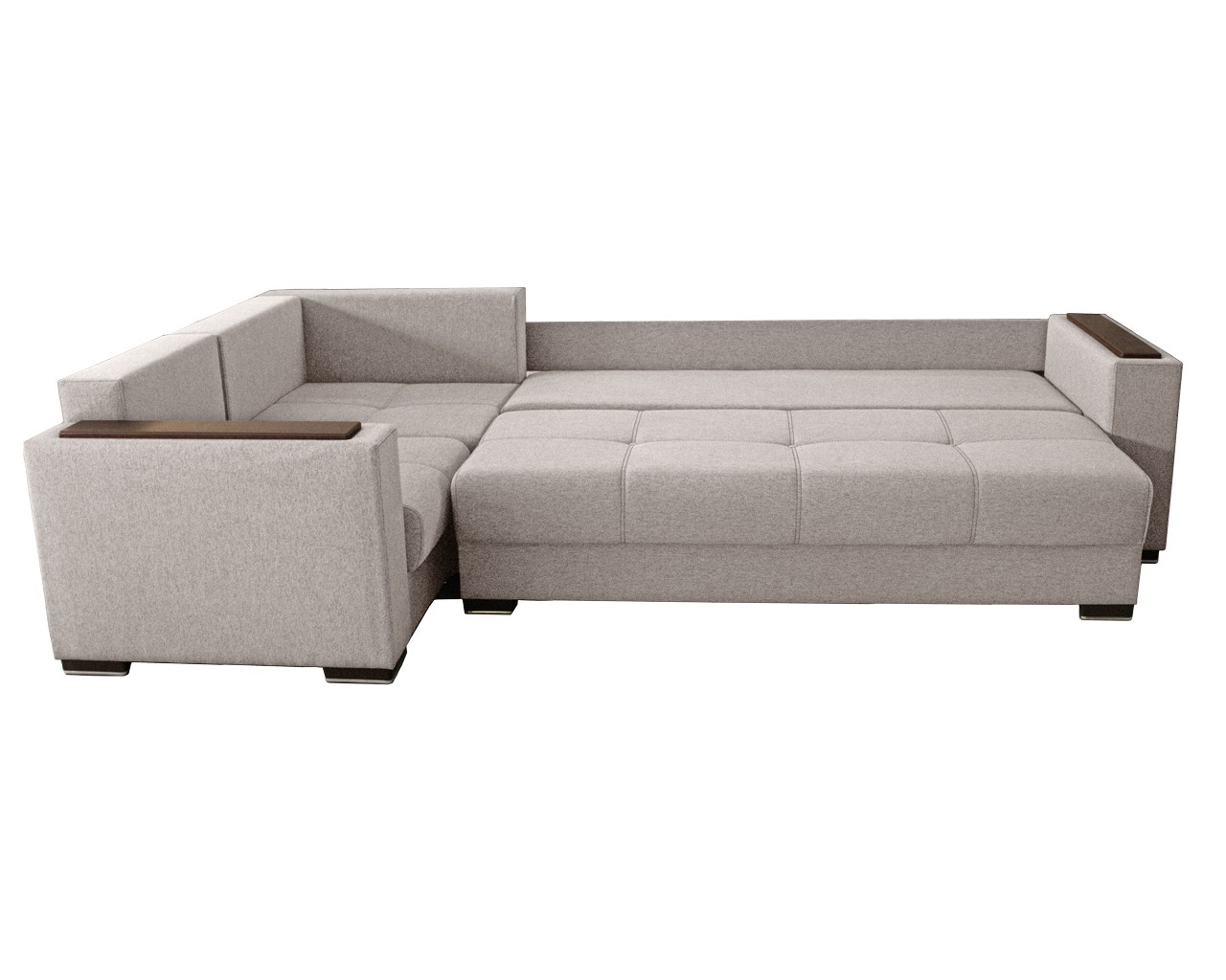 Pe bratele coltarului se afla ornamente din MDF wenge care pot fi folosite ca suport pentru pahare.