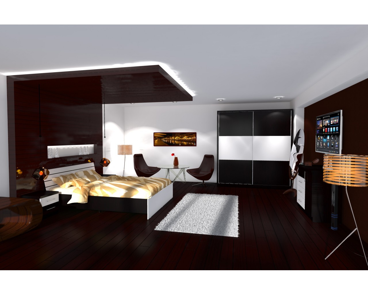 Dormitorul Milano reprezinta o alegere foarte practica datorita multiplelor spatii de depozitare. Dormitorul este compus din dulap cu 2 usi culisante si 3 sertare la interior, pat pentru saltea 140×200 cm sau 160×200 cm, 2 noptiere cu cate 2 sertare si comoda cu 3 sertare si 1 usa.