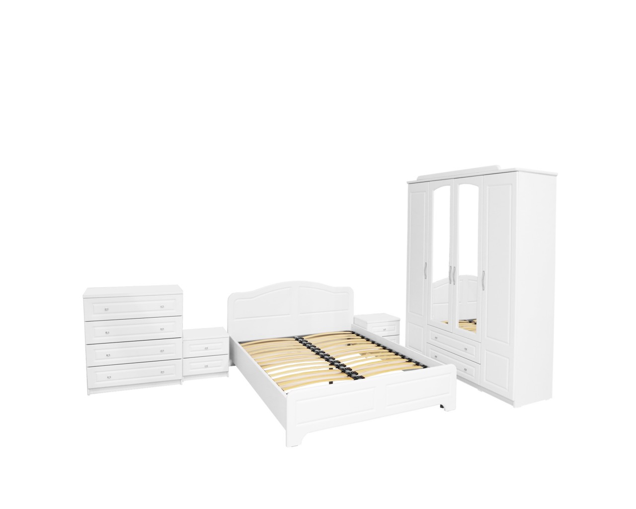 Dormitorul Sara reprezinta o alegere eleganta, dar si practica datorita multiplelor spatii de depozitare. Domitorul este compus din dulap cu 4 usi (2 cu oglinda) si 2 sertare, pat cu somiera metalica fixa, comoda cu 4 sertare si 2 noptiere cu cate 2 sertare.