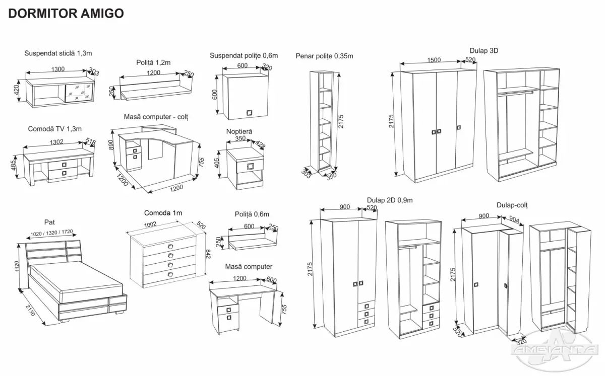 | Tip | 2D 0.9 m, 3D, Colț, Polițe 0.35 m, Poliță 0.6 m, Poliță 1.2 m, Suspendat polițe 0.6 m, Suspendat sticlă 1.3 m |