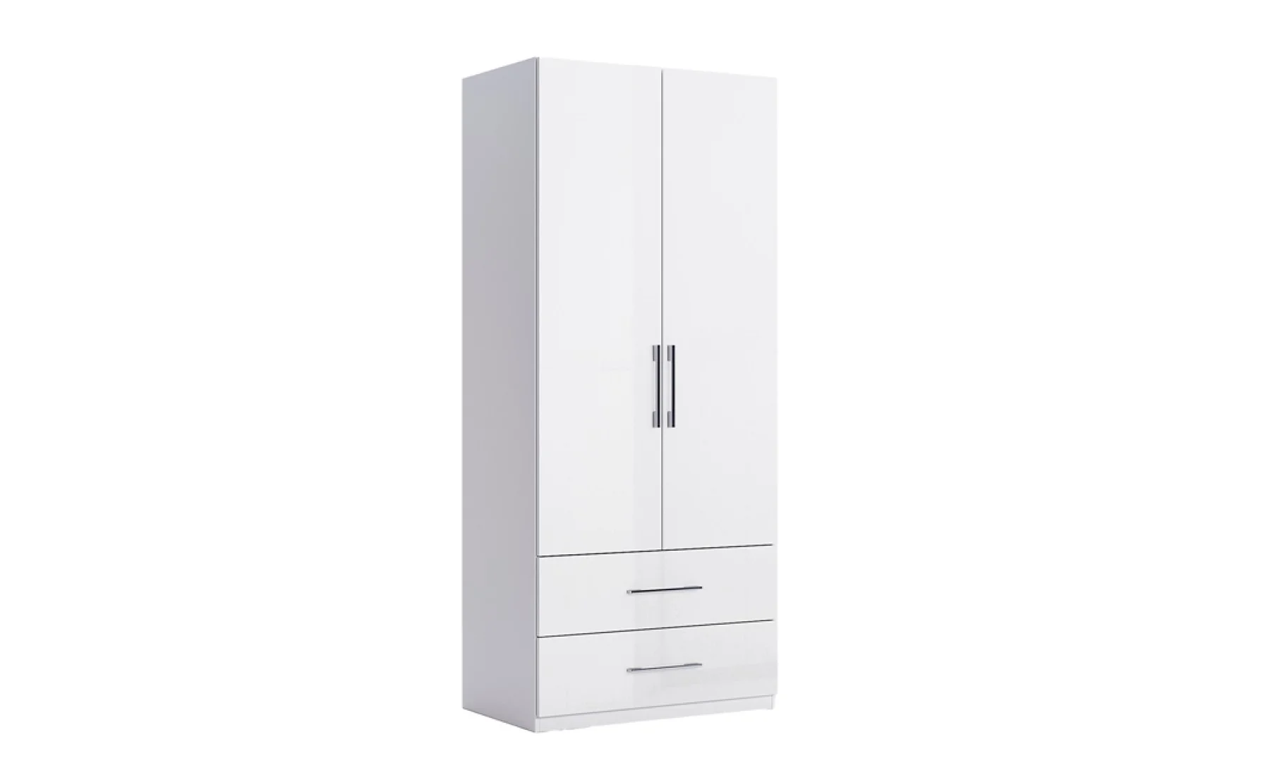 Dulapul Family FM-22-WB cu 2 uși și 2 sertare este conceput pentru dormitoare moderne, unde ordinea și estetica trebuie să coexiste armonios. Finisajul alb lucios accentuează luminozitatea încăperii, iar liniile drepte și proporțiile echilibrate contribuie la un aspect coerent și contemporan. Sertarele inferioare adaugă un plus de funcționalitate, facilitând organizarea obiectelor de uz zilnic.