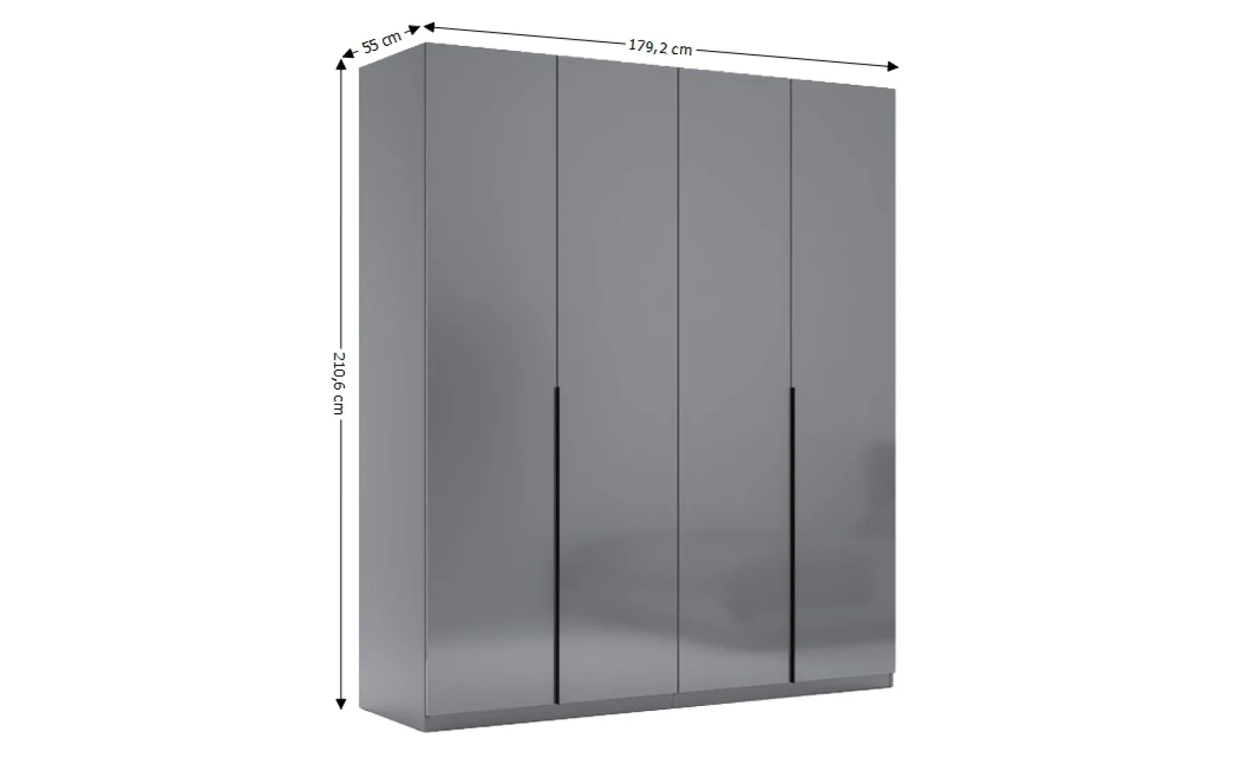 Dulapul Teo TO24 cu 4 uși fără oglinzi completează setul Dormitor Modern Teo printr-un design modern, curat și practic. Finisajul Grafit mat, în textură semi-mată, oferă o prezență vizuală elegantă și contemporană, ideală pentru camere amenajate într-un stil actual. Cele patru uși oferă acces rapid la un interior bine compartimentat, perfect pentru organizarea garderobei, a accesoriilor și a lenjeriei.