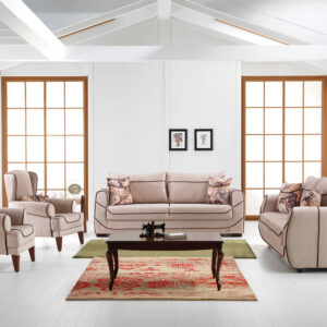 Holul Gold, combina confortul si functionalitatea pe o linie de design clasic superba. Forma bratelor si pernele decorative impreuna cu picioarele special concepute pentru acest model, aduc in sufrageria noastra o atmosfera nobila pe o amenajare eleganta. Ofera suprafete generoase si confortabile de dormit iar picioarele elegante faciliteaza curatenia dedesubtul canapelelor.