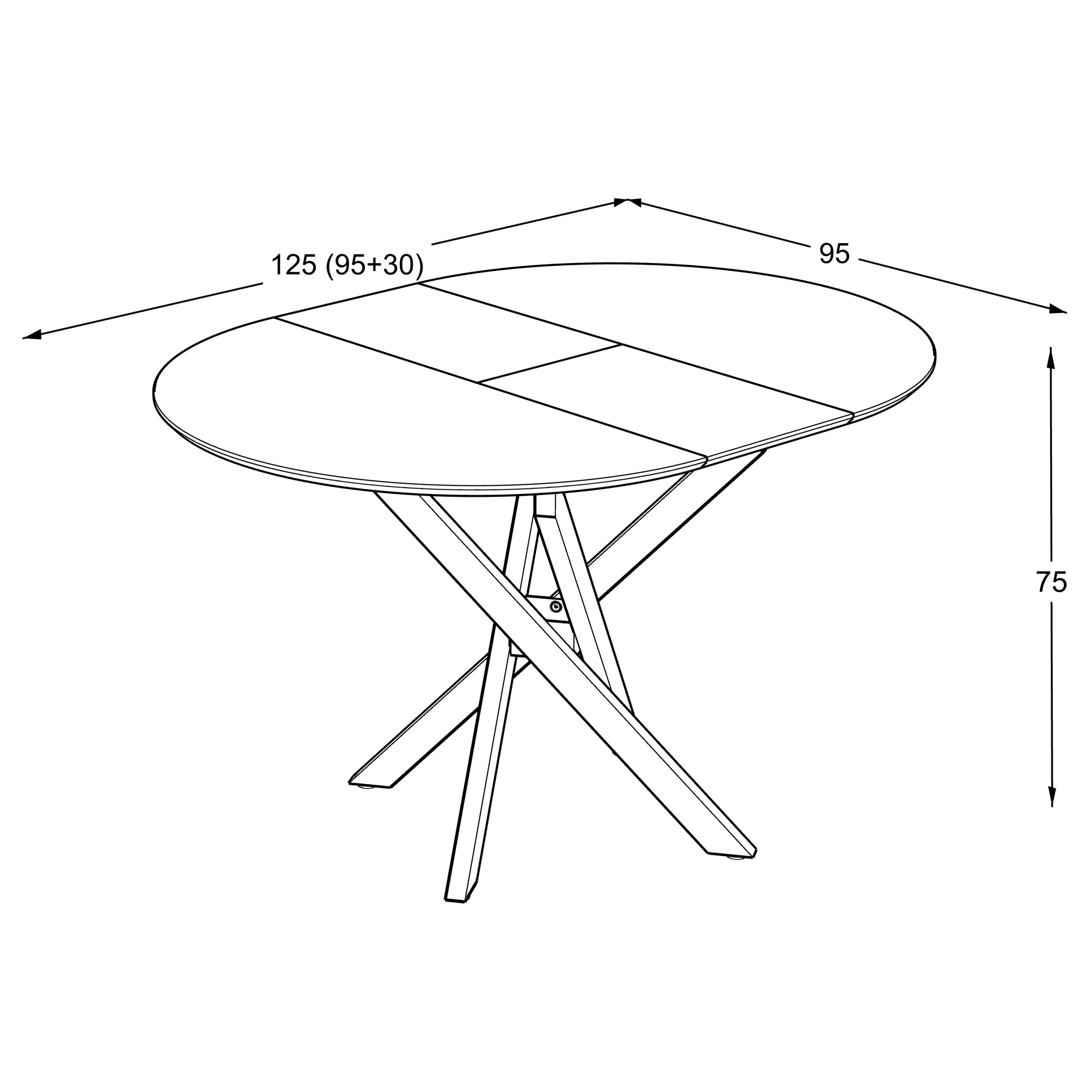 Masa extensibila Ultra este susținută de o structură metalică de culoare negru mat. Picioarele sunt dispuse într-un stil de tip „spider” (păianjen) sau încrucișat, oferind stabilitate maximă și un aspect vizual dinamic.Culoarea negru mat a bazei creează un contrast puternic și modern cu albul blatului fiind ideală pentru decoruri contemporane, scandinave sau minimaliste. Datorită piciorului central, oferă mai mult loc pentru picioare și permite depozitarea scaunelor complet sub masă.