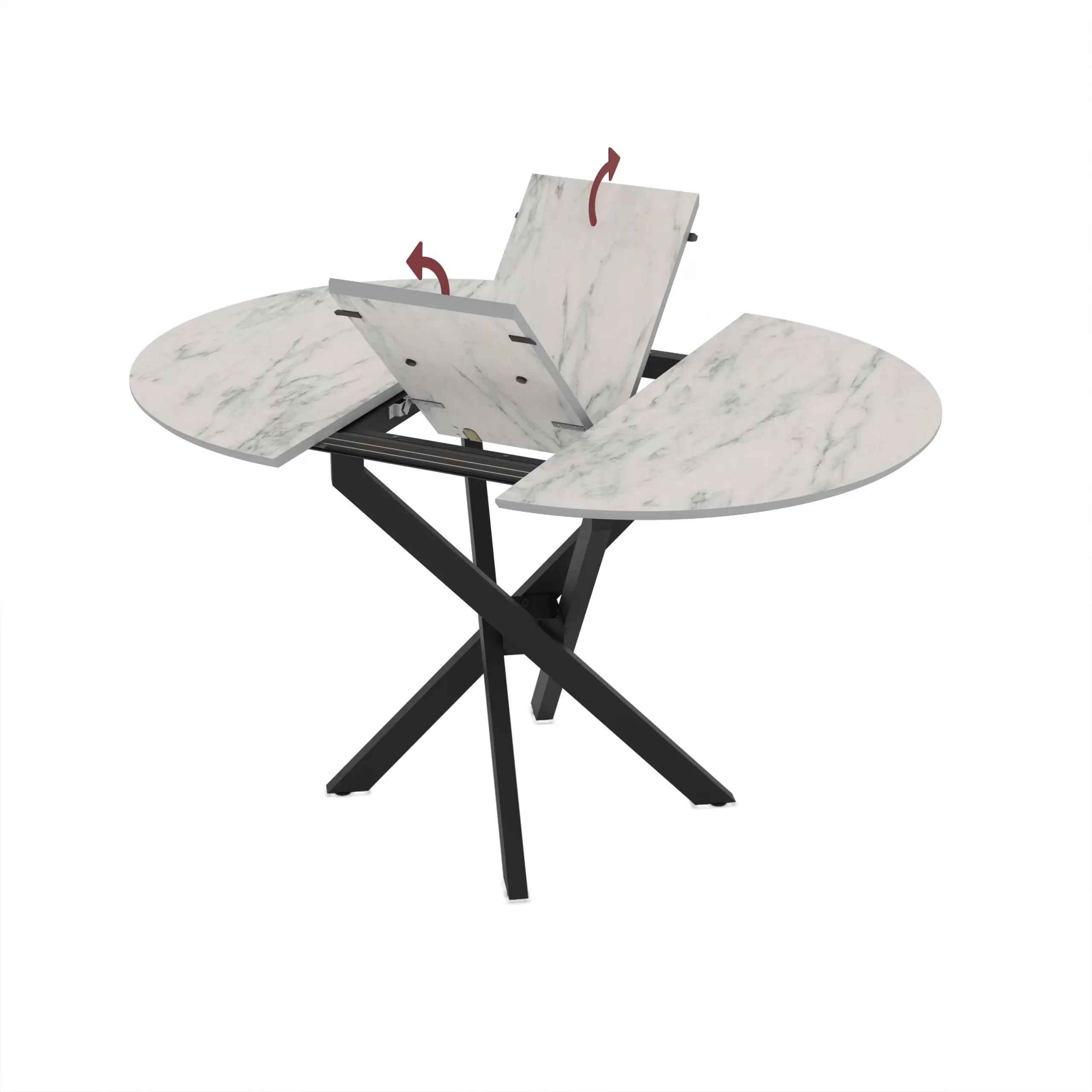 Masa extenisibila Ultra rounda are un finisaj de marmura ideala pentru bucatarie sau dining, caracterizată printr-un design modern, minimalist și elegant.